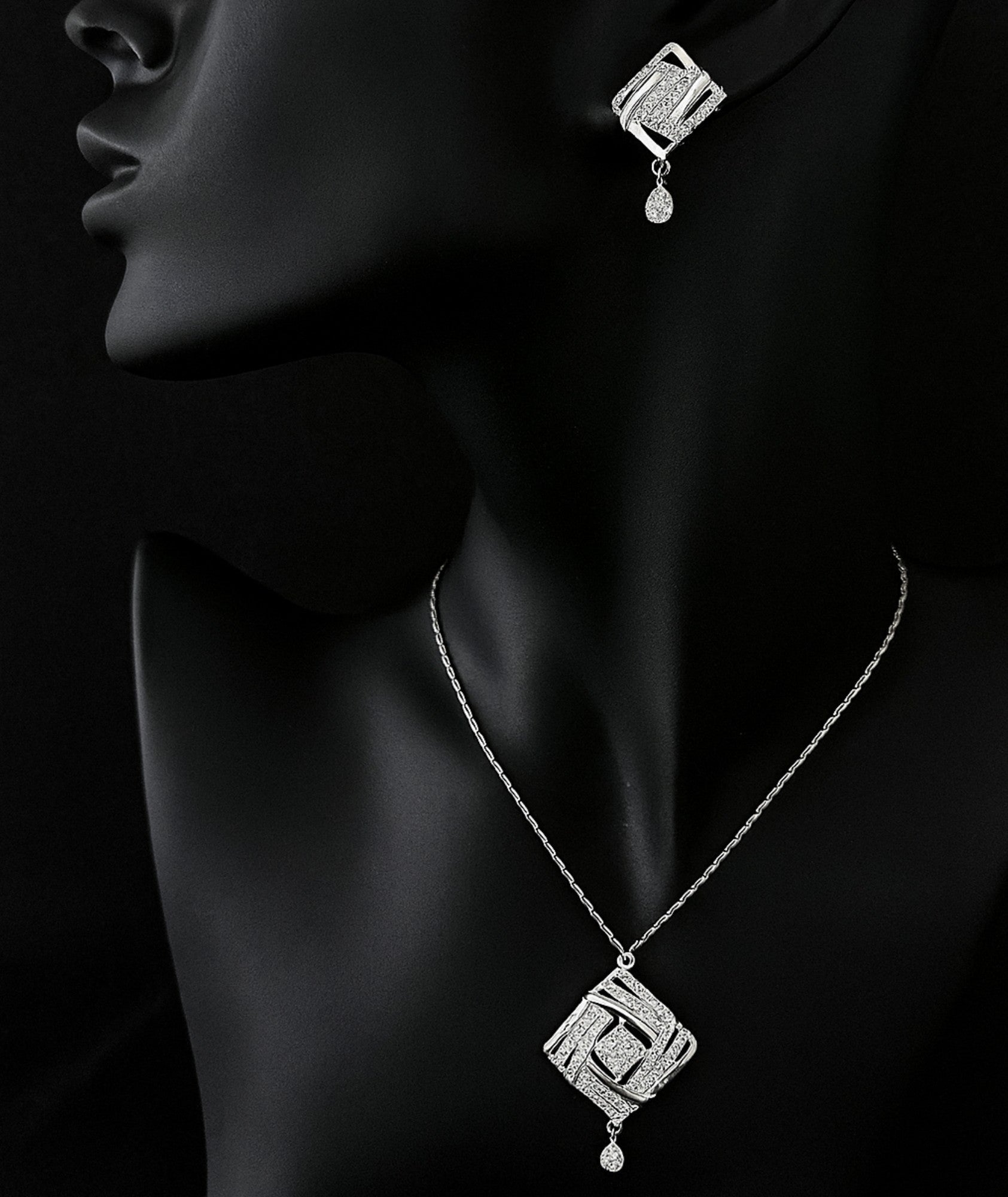 Elevate your jewellery collection with this exquisite pendant & earring set, crafted in pure 925 sterling silver. Featuring a modern geometric design with a striking diamond-shaped lattice pattern, the set is beautifully accented with sparkling cubic zirconia stones that radiate brilliance from every angle. 💎 Perfectly hypoallergenic, durable, and suitable for both everyday wear and special occasions, this set complements both western outfits and traditional attire with timeless elegance. 🌸