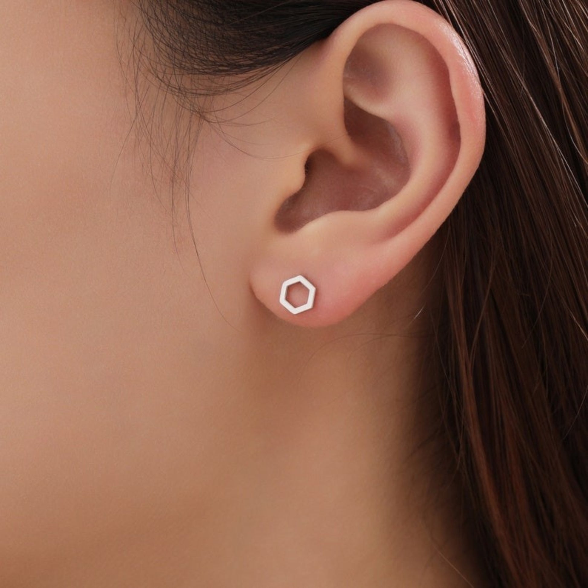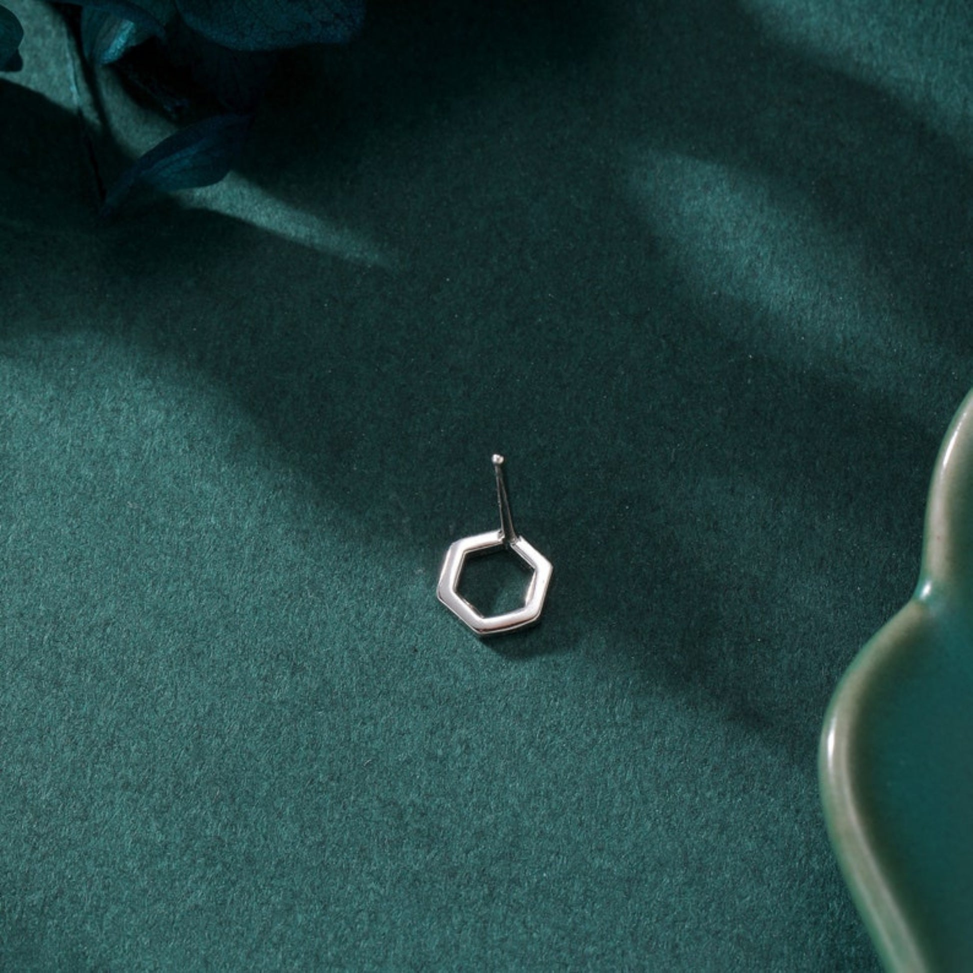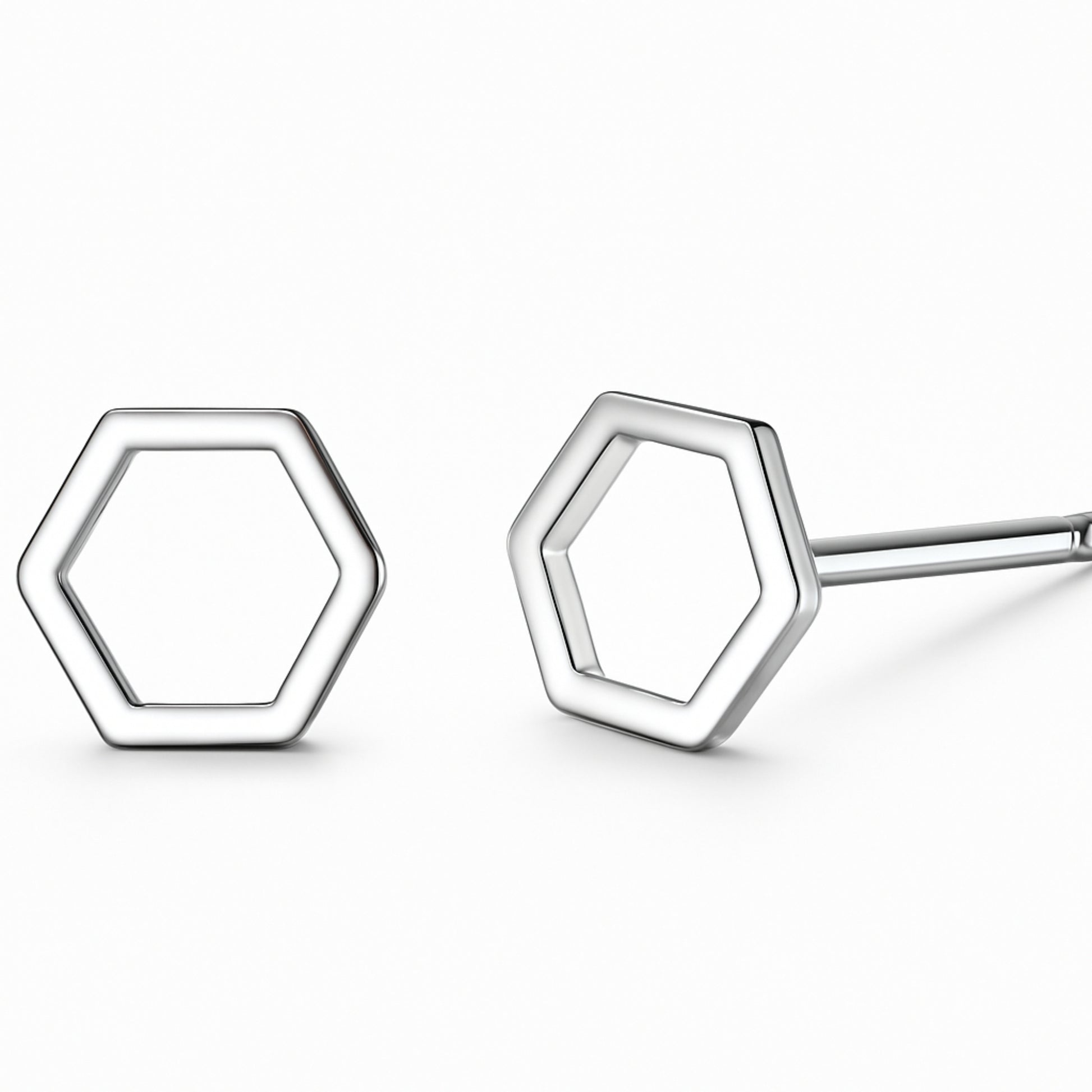 Hexagonal Sterling Silver Stud Earrings, Minimalist Geometric Design